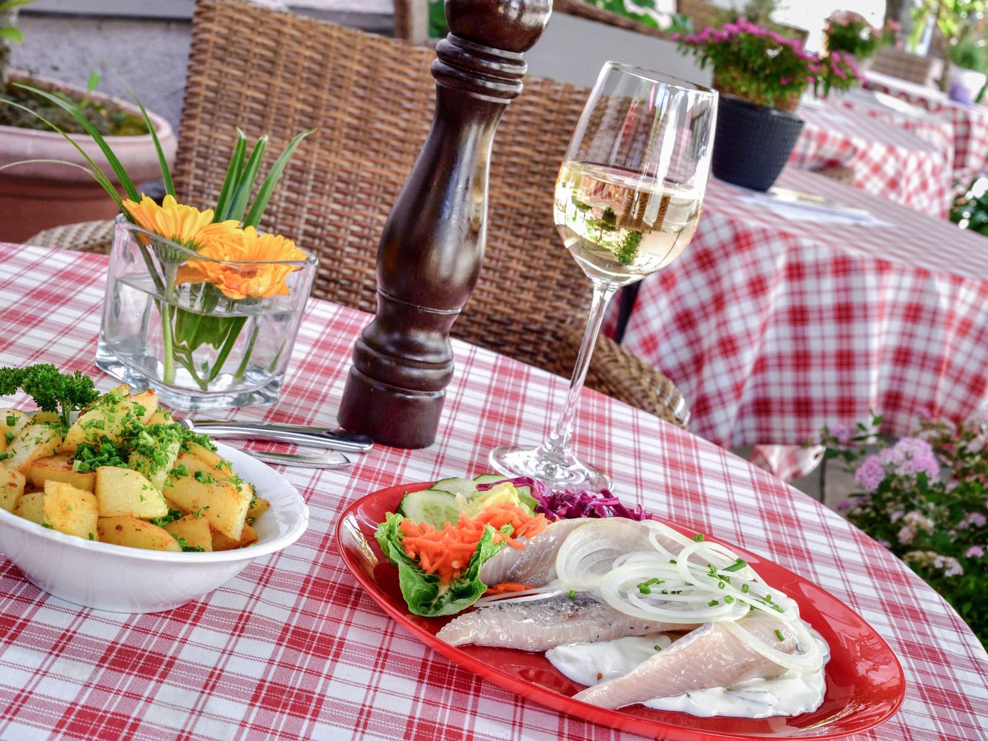 Neben süßen Verlockungen gibt es bei uns außerdem durchgehend warme Küche und täglich wechselnden Mittagstisch mit regionalen und internationalen Gerichten. Unser Mittagsmenü bietet eine Auswahl an Fleisch-, Fisch-, vegetarischen und veganen Gerichten, so dass für jeden Geschmack etwas dabei ist. Selbstverständlich werden alle Gerichte immer frisch für Sie zubereitet.